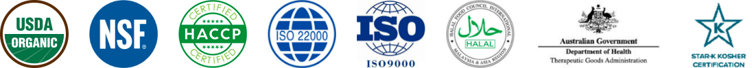 Raw material manufacturers: Certified by the US NOP organic certification, the US NSF-GMP system certification, Australia TGA certification, international HACCP certification, international ISO22000 system certification, international ISO9000 system certification, HALAL certification, KOSHER certification.